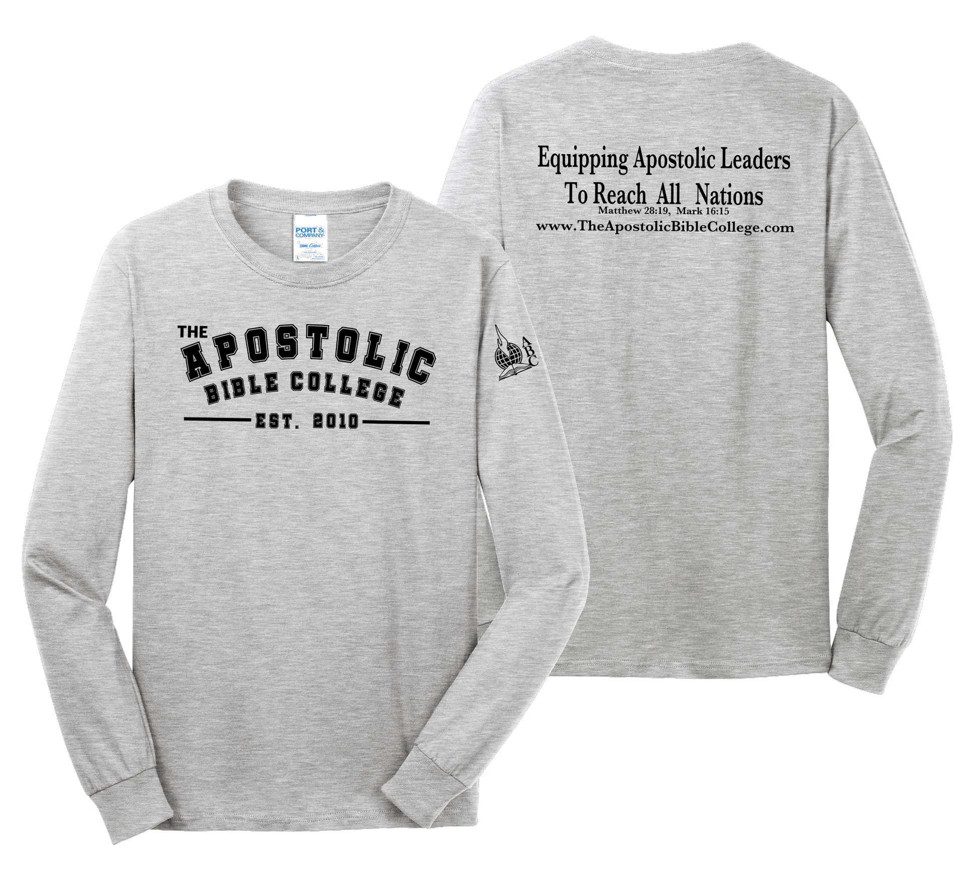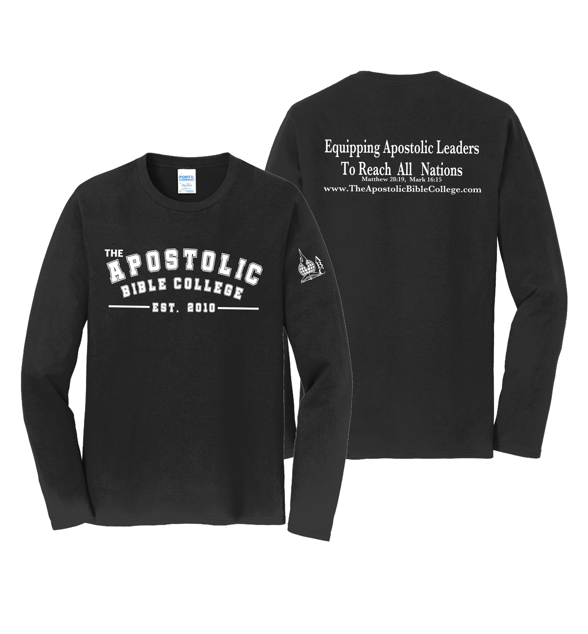 The Apostolic Bible College EST. and core message Long Sleeve T-Shirt.